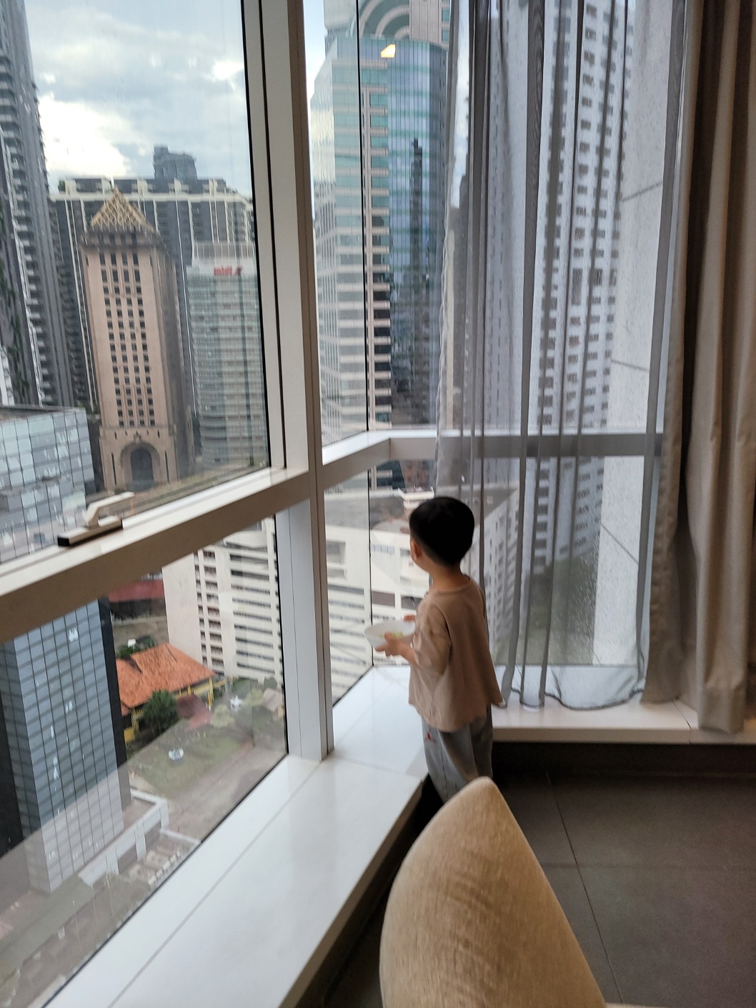그 잘난 숙소에서 deposit으로 100달러를 요구하고 밤에는 갑자기 불이 나가(Black Out) 아무 것도 할 수 없는 상황마저 벌어지는 등 아주 난리였다. 우리와 같은 31층에 묵고 있던 말레이시아 사람들 방도 불이 나갔지만 그들의 방을 담당하는 expert들이 다녀가 고쳐주었으나 우리가 묵는 방 주인하고는 연락이 닿지 않아 그 기술자들에게 부탁하여 겨우 전기를 고쳤다. 모든 것이 카톡으로만 주고받아야 하는 상황이 너무 난감했다. 호텔이 아닌 곳에 묵는다는 게 이렇게 위험한 상황을 초래할 수도 있구나 싶었다. 최소한 별도 열쇠는 있어야 했는데 말이다.. 그리고 이 건물을 관리하는 사람이 아무도 없다는 게 정말 말이나 되나? 아마 방 몇 개 정도를 얻어서 카톡으로 혹은 댓글로만 숙소를 제공하고 돈을 받는 영업인 것 같았다. 말이 그렇지 어린 아이에게 트라우마 생겼을 것 같아 노심초사.. 다시는 다시는 레지던스에 묵지 않으리라.. .. 말레시아 여행의 초반은 이렇게 난리통이었다.