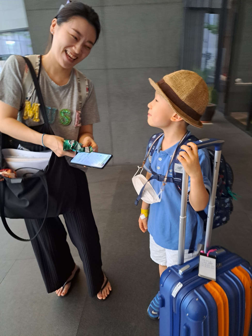 버스를 타고 쿠알라룸푸르 공항으로 아이들을 마중나갔다. 언제 티켓팅 실수가 있었냐는 듯 꼬맹이들을 와락 끌어안고 온 가족이 택시를 이용하여 숙소로 왔다. 어제 들렀던 대형 Q Mall에서 먹거리를 잔뜩 준비하고 저녁 식사 했던 데를 다시 들러 온 식구 합류하여 여행을 잘 해 보자 하고 숙소로 돌아왔는데 가장 먼저 방으로 뛰어 들어간 우리 우성이.. 이제 만 29개월 된 녀석이 방에 폴짝 뛰어들어가더니 그만 문을 잠근 것이다. 그런데 혼자 문을 열지 못하자 extra key도 없고, 프론트에 가서 물어봐도 전혀 조치를 취해 주지 않았다. 겨우 Janet라는 여성과 카톡으로만 수백 번 문자를 주고 받았으나 곧 해결해 주겠다고 하면서 자꾸 시간만 끌었다.