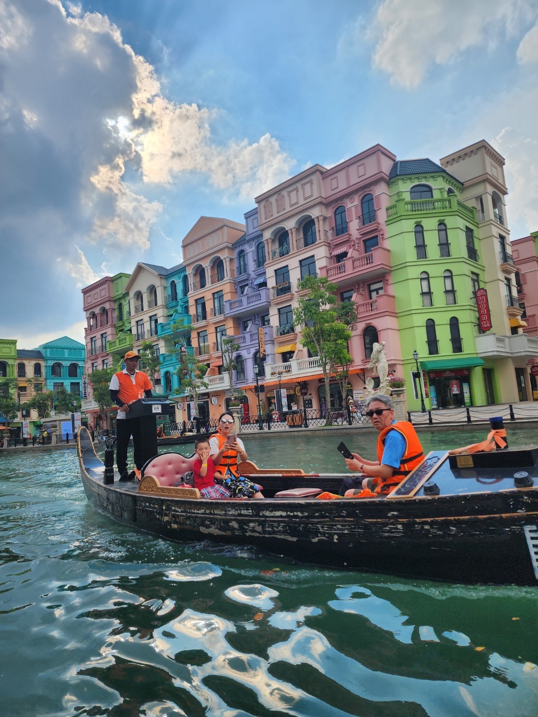 셔틀버스로 거의 1시간 소요되어 도착 한 메가 그랜드월드. 평일이기도 하고 또 오픈된 지 겨우 1년여 남짓한 때문인지 매우 한적하였다. 베니스를 모방하여 만든 곳이라는 게 금세 눈에 들어온다. 제법 그럴싸한 인공 운하를 만들고 곤돌라를 운행하는 테마 파크. 인공 운하 양 쪽으로는 베니스를 흉내냈으나 페인트 냄새가 마르지 않은 듯 촌스러운 분위기였지만 그래도 여행지에 온 기분을 만끽할 수는 있다.