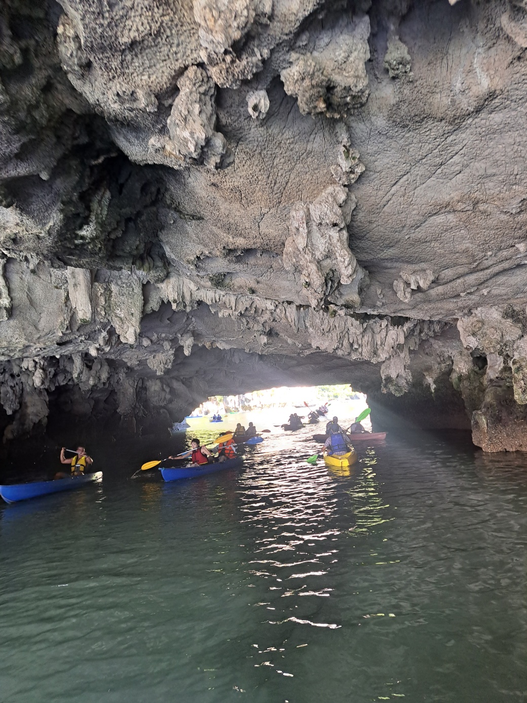 선택관광으로 보트나 카약을 이용해야 볼 수 있다. 독특하고 신기한 지형으로 되어 있는 이 동굴은 좁은 입구를 통해 카약이나 뱀부 보트를 타고 들어가야 하는데 여자 뱃사공은 능숙하게 노를 젓고 동굴 사이를 누비며 관광객을 즐겁게 해 준다. 원숭이들이 뛰노는 곳도 많다. 자칫하면 카약이 뒤집히는 경우도 왕왕 발생한다고 하니 구명조끼는 필수.